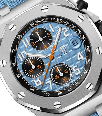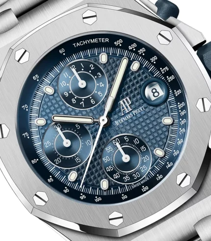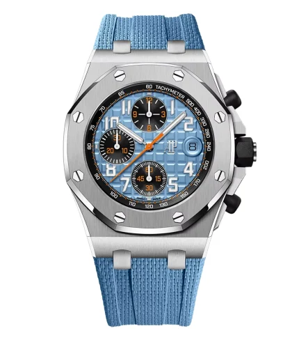 - Dial: Metallic Blue with Red Accents